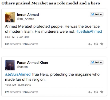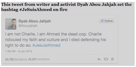 People are honouring Merabet online, with many pointing out that he represents the face of modern Muslims and not the gunmen who killed 12 people on Wednesday. Inspired by #JeSuisCharlie, they are using the hashtag #JeSuisAhmed