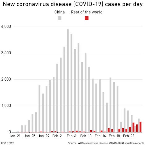 Bruce Aylward, a Canadian doctor and epidemiologist, led the World Health Organization's COVID-19 mission to China. This week, he showed reporters epidemic curves, or epicurves, of China's COVID-19 outbreak to illustrate how transmission chains — people spreading the infection to others — were interrupted.