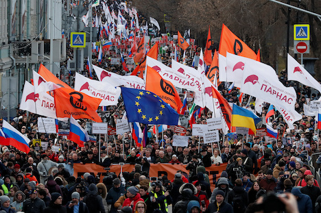 Opposition activists flock to central Moscow to commemorate slain politician Nemtsov and condemn constitution amendments