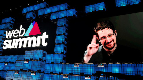 | FILE PHOTO: Edward Snowden speaks via video link to a conference in Portugal. © REUTERS/Rafael Marchante |