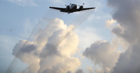 | A plane sprays pesticide over the Wynwood neighborhood in the hope of controlling and reducing the number of mosquitos, some of which may be capable of spreading the Zika virus on August 6, 2016 in Miami, Florida. (Photo: Joe Raedle/Getty Images) |
