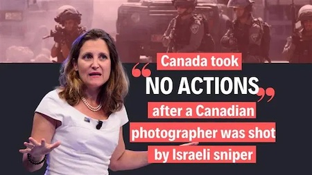 Canadians for Justice and Peace in the Middle East highlighted the official confirmation by attaching a letter from Freeland in response to Nazzal’s lawyer, Dimitri Lascaris, who had demanded that the Canadian government hold the Israeli sniper accountable.