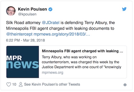 On Wednesday, Minnesota Public Radio (MPR) reported that former Minneapolis-based FBI agent Terry James Albury had been charged with leaking classified government information to the online publication The Intercept. Albury’s legal defense, led by Jane Anne Murray and Joshua Dratel, identified him as a whistleblower, stating that his decision to leak the documents was “driven by a conscientious commitment to long-term national security and addressing the well-documented systemic biases within the FBI.”